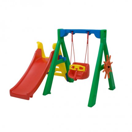 - a conexão do escorregador à estrutura do balanço é feita por 2 conectores plásticos localizados na base e no meio da estrutura