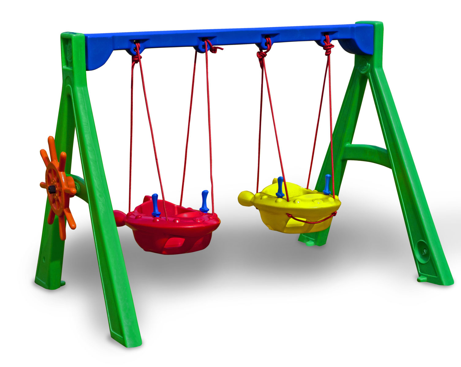 Este balanço duplo vai alegrar as crianças pequenas! Vem com timão para brincar de capitão!