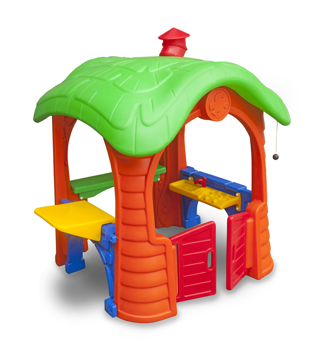 • cada uma das laterais é ocupada por uma atividade : portinha vai-vem, balcão externo, parede com módulo contendo pia, fogão e escorredor de pratos, e balcãozinho aberto na parte inferior que faz o fechamento traseiro da casinha
