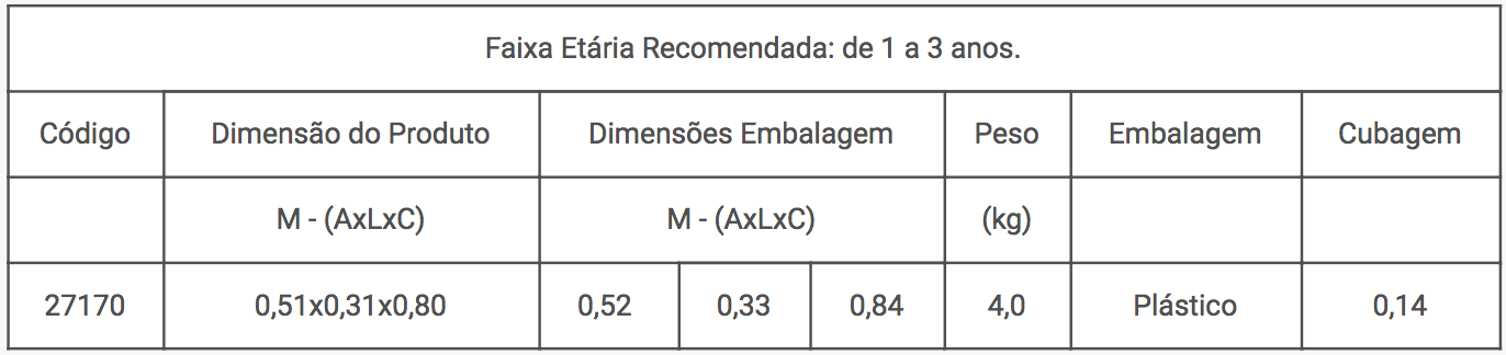 Dimensões 84 × 33 × 52 cm