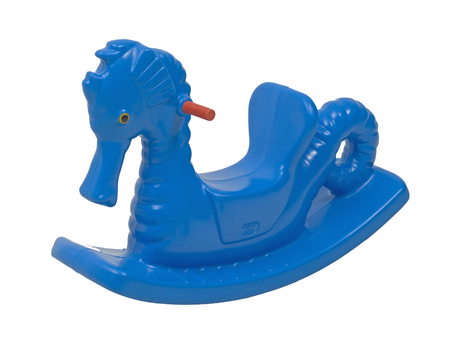 - gangorra para 1 criança com formato de cavalo marinho, com olhos de acrílico