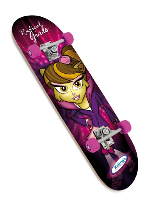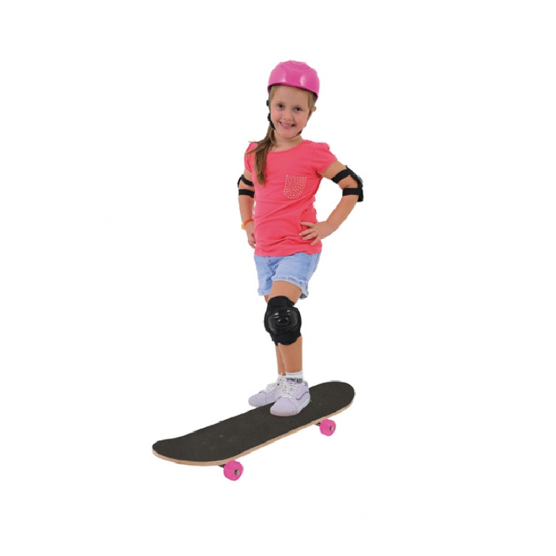 Conjunto Skate Radical Girl com lixa e acessórios possui shape resinado, trucks em alumínio polido e rodas em PVC . Acompanha capacete, joelheira, cotoveleira e prática sacola com alça para transpote. Indicado para crianças acima dos 6 anos, comprimento de 80 cm.