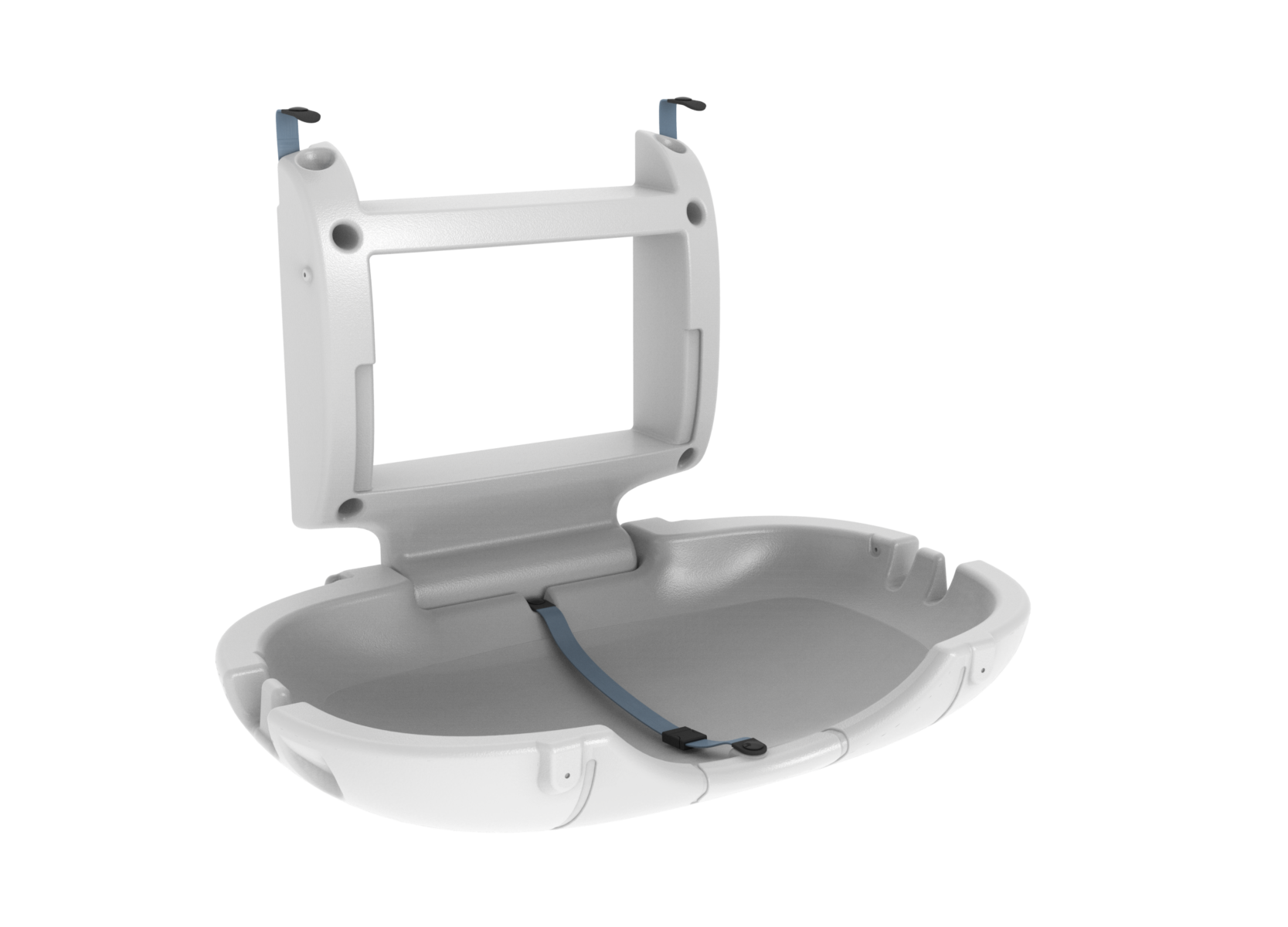 • Concha com ressaltos na laterais para pendurar bolsas e sacolas e cinto de segurança