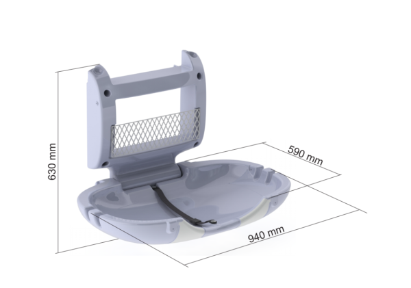 • Produto em plástico rotomoldado com cantos arredondados