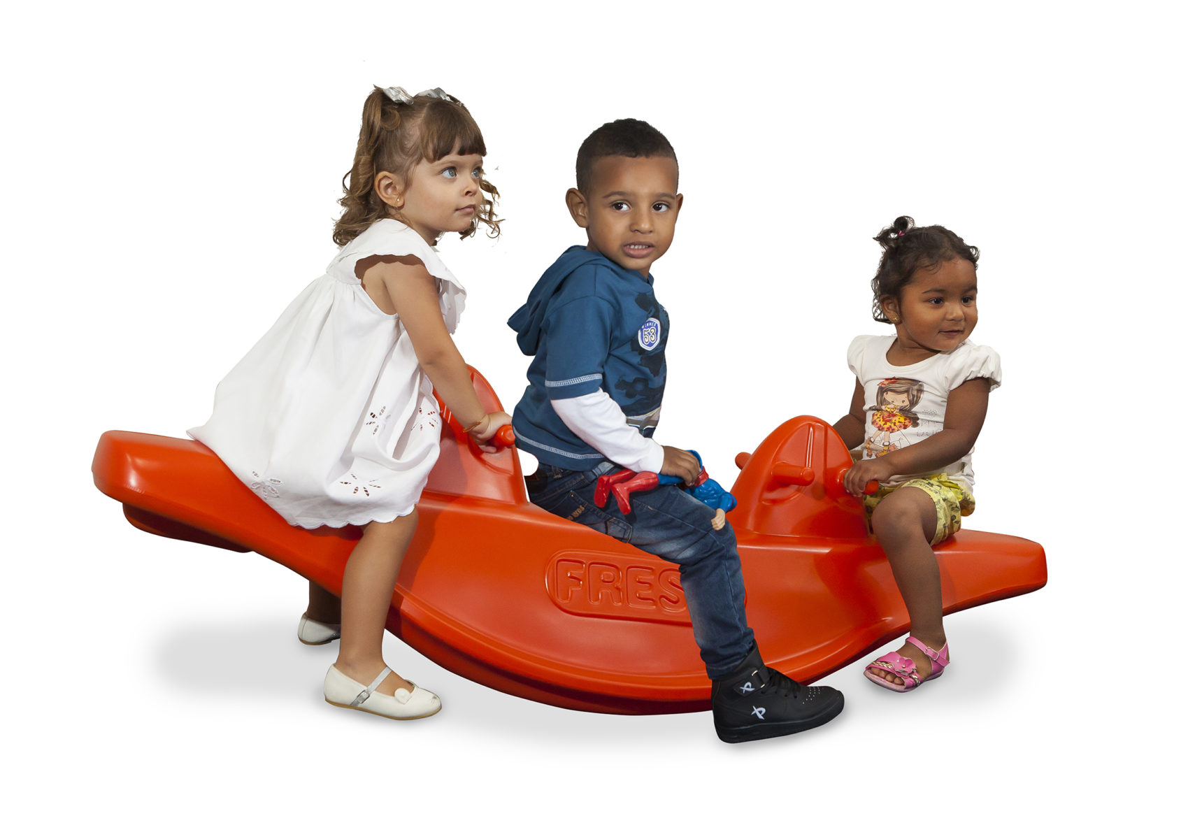- Gangorra para 3 crianças com manoplas duplas de tal forma que todas as crianças tenham onde se segurar.