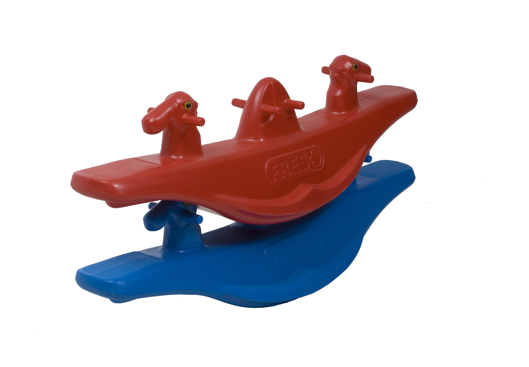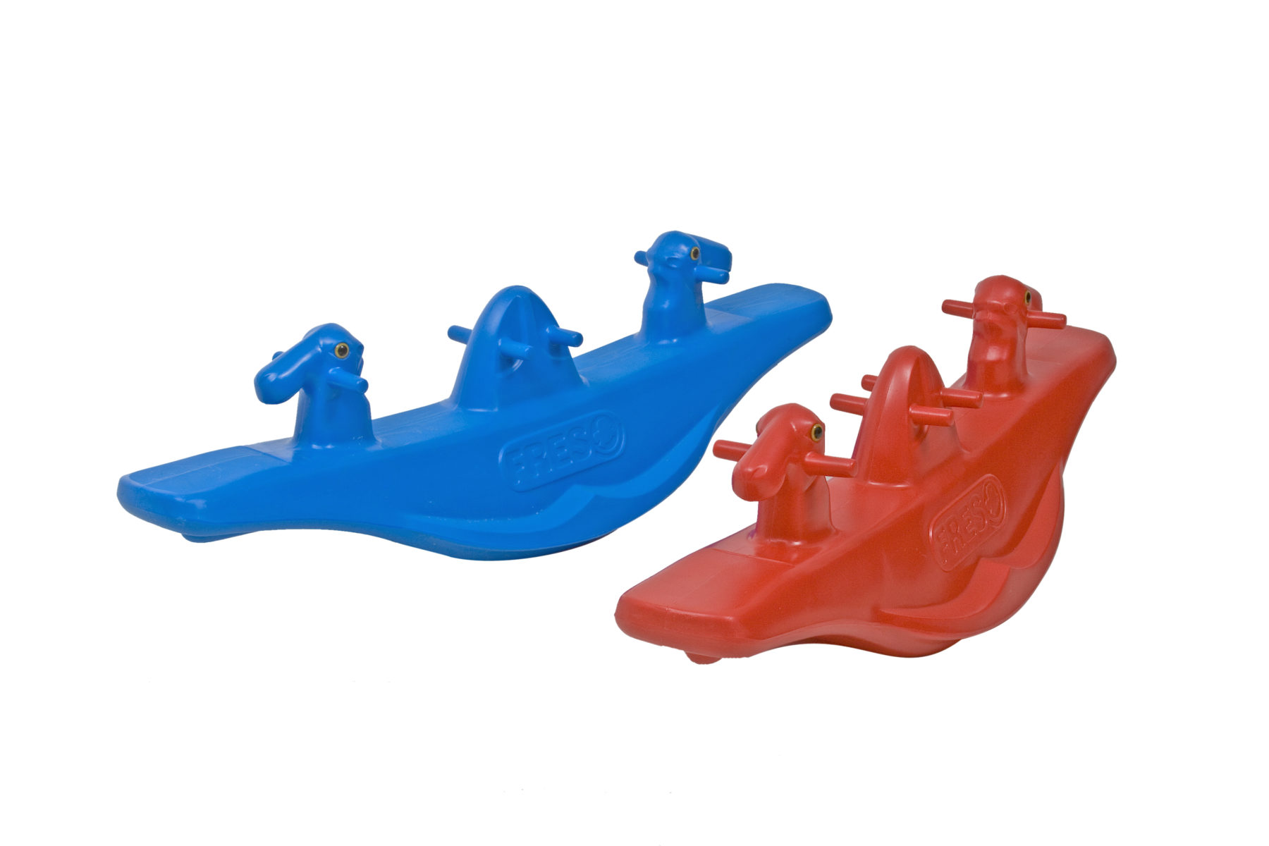 - Gangorra para 4 crianças com formato de camelo, contendo 2 cabeças nas extremidades do assento e 1 corcova no meio da gangorra