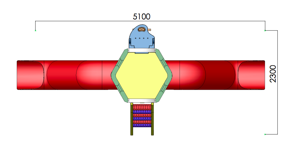 • 2 paredes grandes unidas pela plataforma sextavada e por 2 arcos de segurança