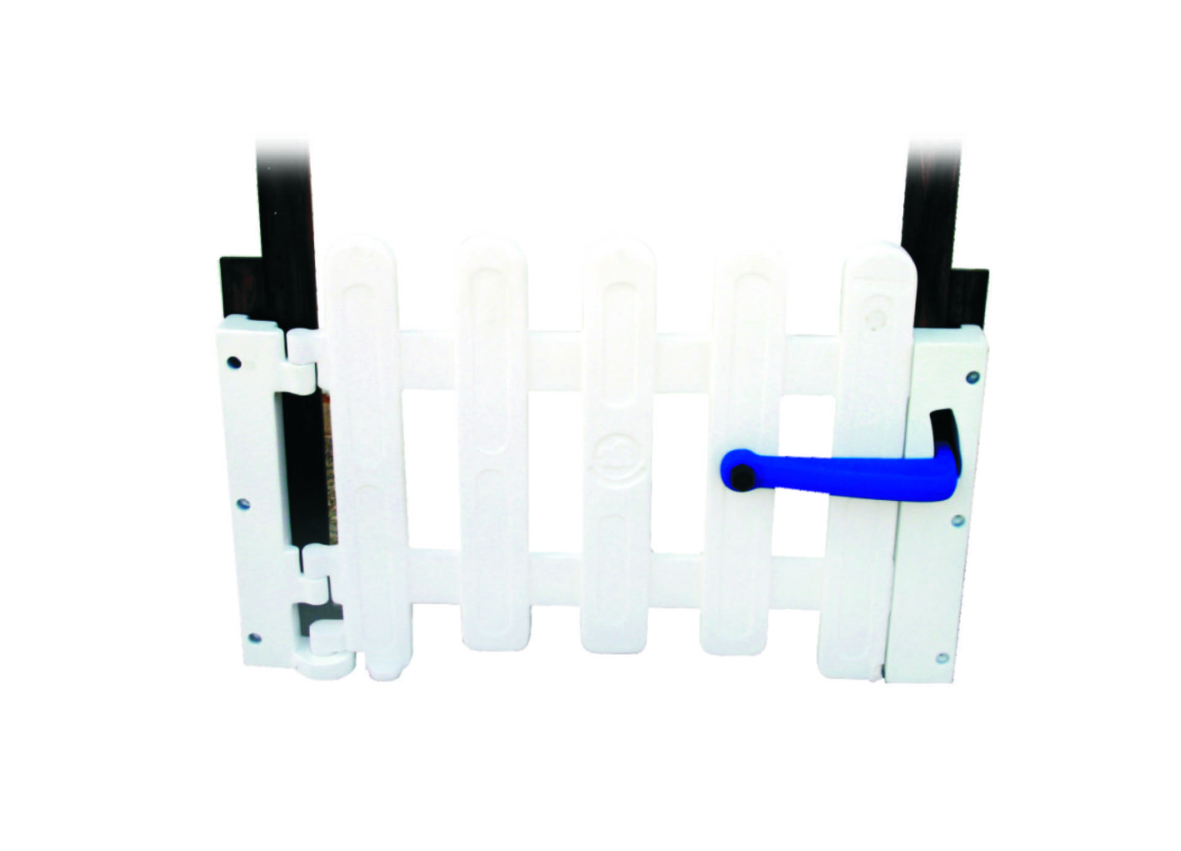 - os batentes são fixados à parede por parafusos e a cerquinha é articulada ao levantar-se a trava