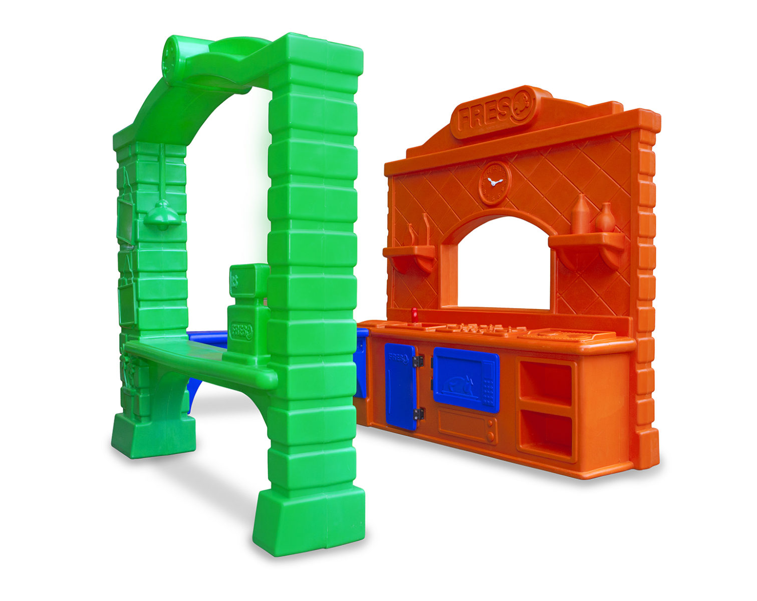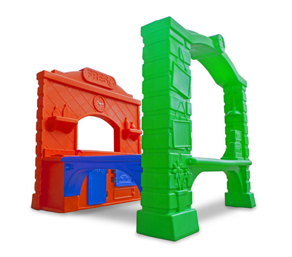 • composto por apenas 3 laterais com amplas aberturas para permitir total integração entre diversas crianças e espaço interno de 1,23m². • produto fabricado totalmente em plástico rotomoldado com aditivo anti-uv.