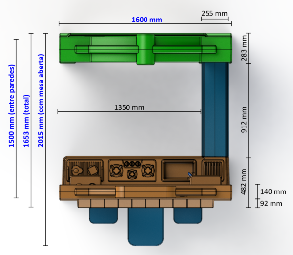• composto por 2 paredes em forma de tijolos e interligadas por um balcão de atendimento de 255m de largura por 912mm de comprimento.