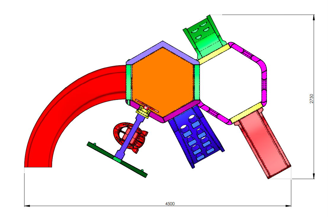 - 1 escorregador curvo com um poste de sustentação, contendo rosca no poste e na rampa, para fixação segura.
