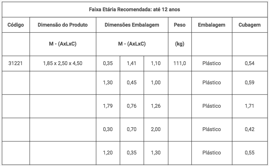- 1 rampa de escalada com orifícios vazados e saliências para apoio dos pés e espaço para passagem de apenas 1 criança por vez na parte mais alta (segurança)