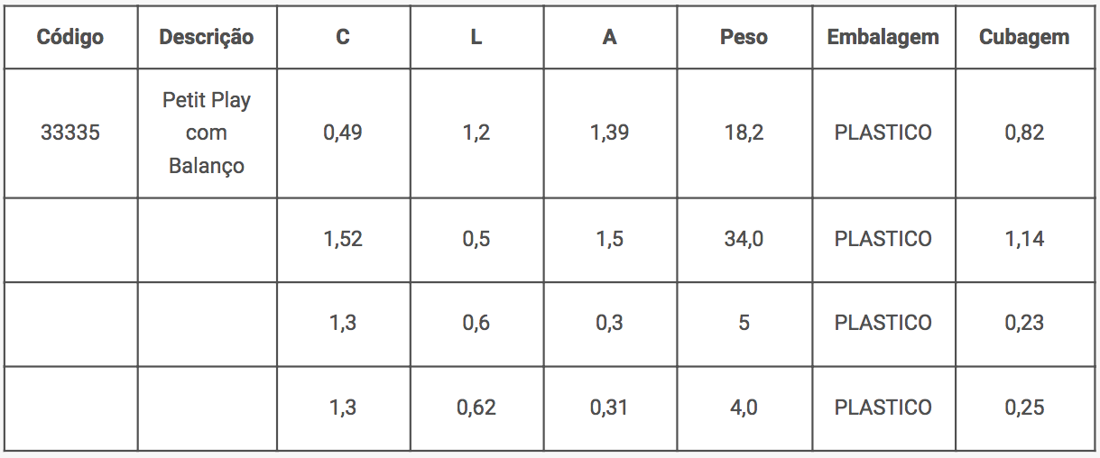 Petit play com balanço contém: