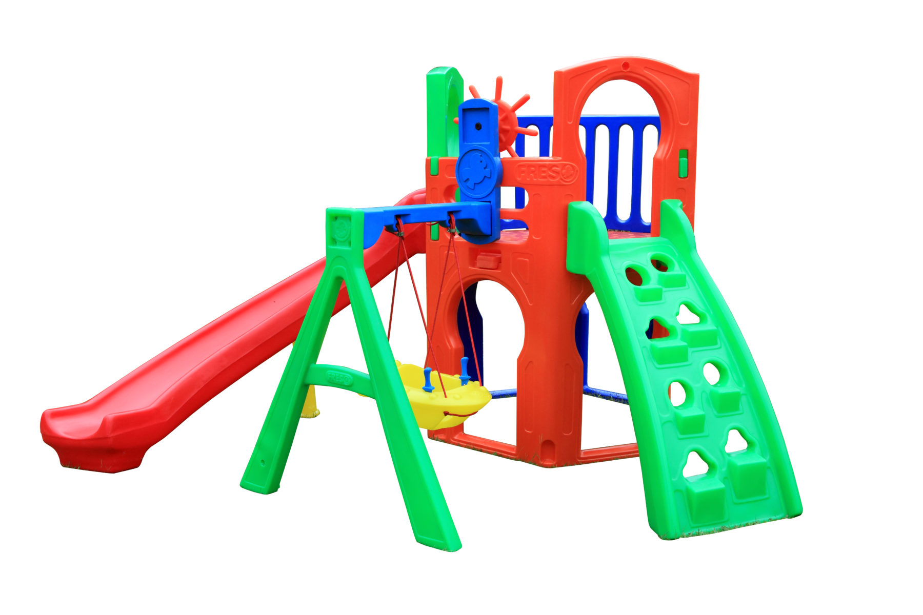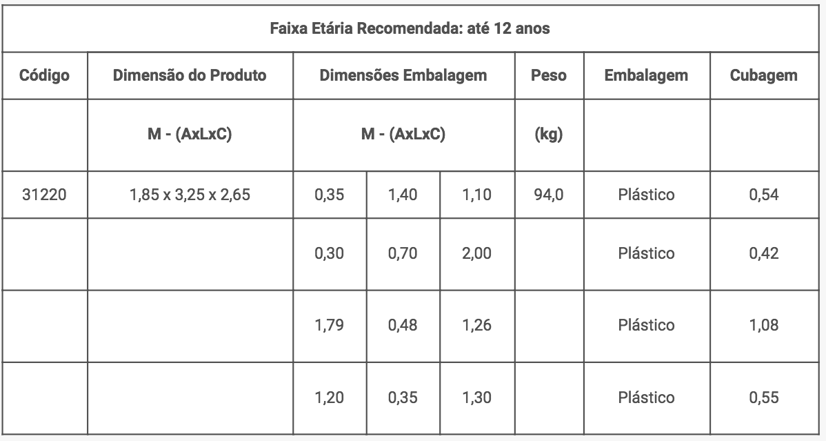 - 1 rampa de escalada com orifícios vazados para apoio dos pés e espaço para passagem de apenas 1 criança por vez (segurança)