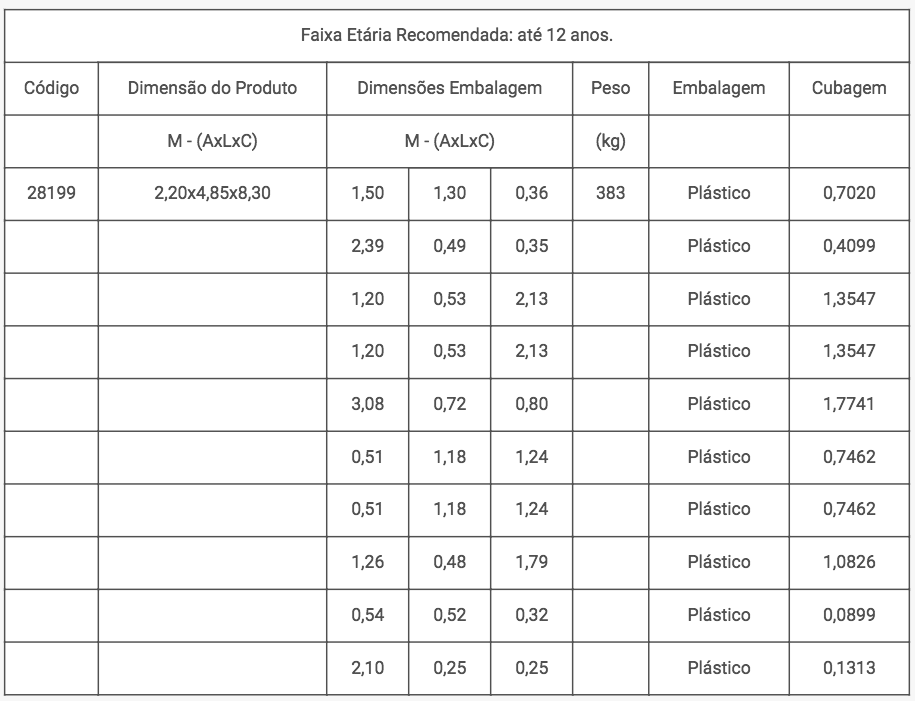 • Espaço aproveitável para brincadeiras tanto na parte de cima quanto na parte de baixo do brinquedo